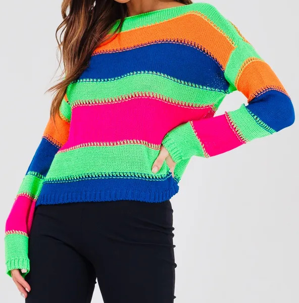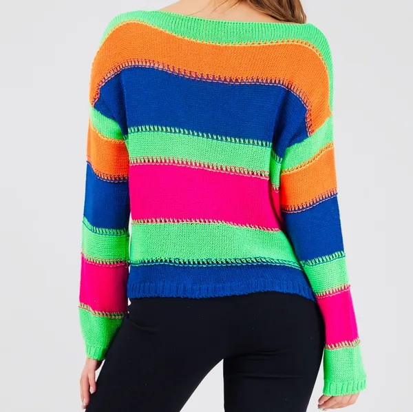 Product Description IN STORE 2-3 DAYS SHIPPING Ladies this vibrant sweater is cozy and comfy. It's oversized and runs true to size.