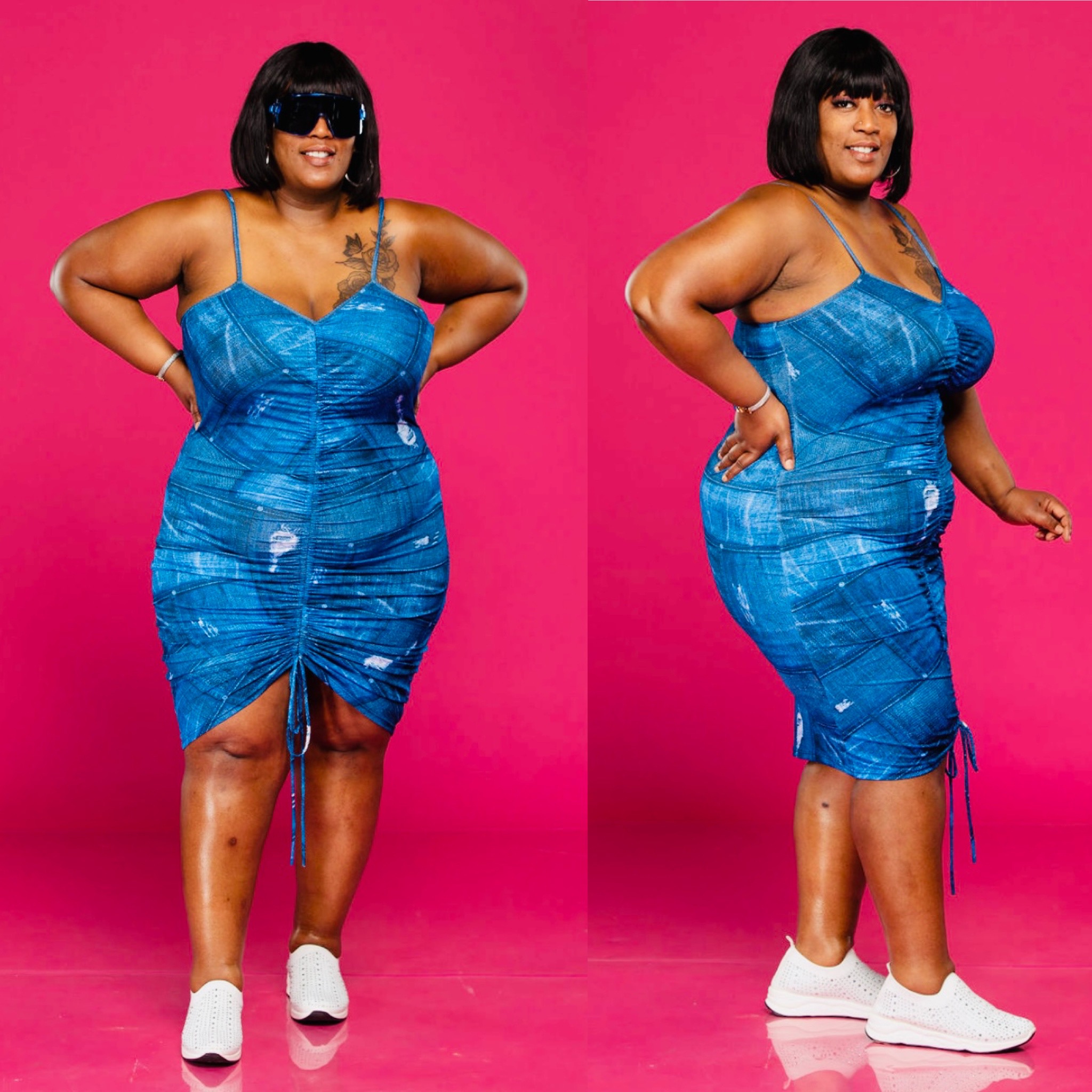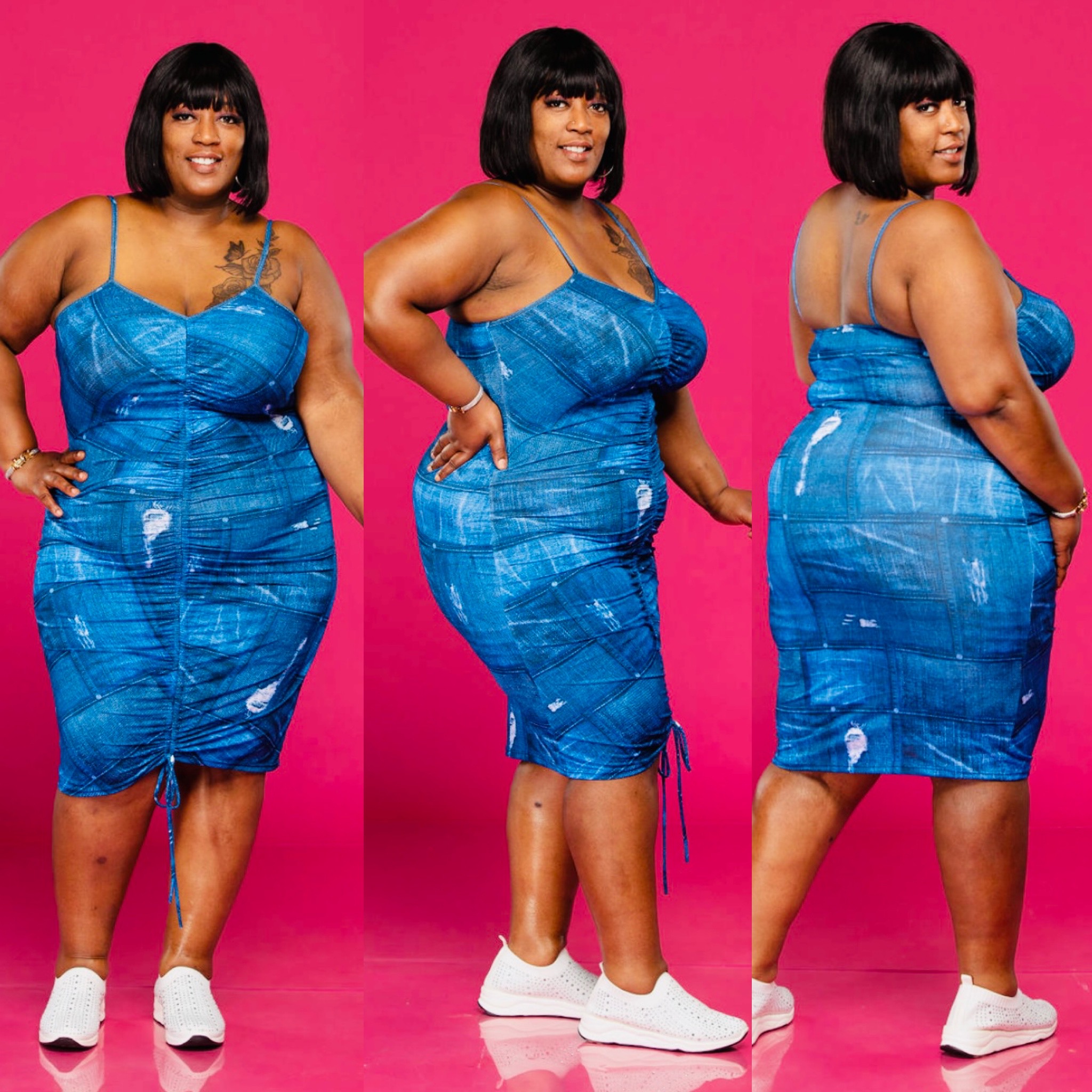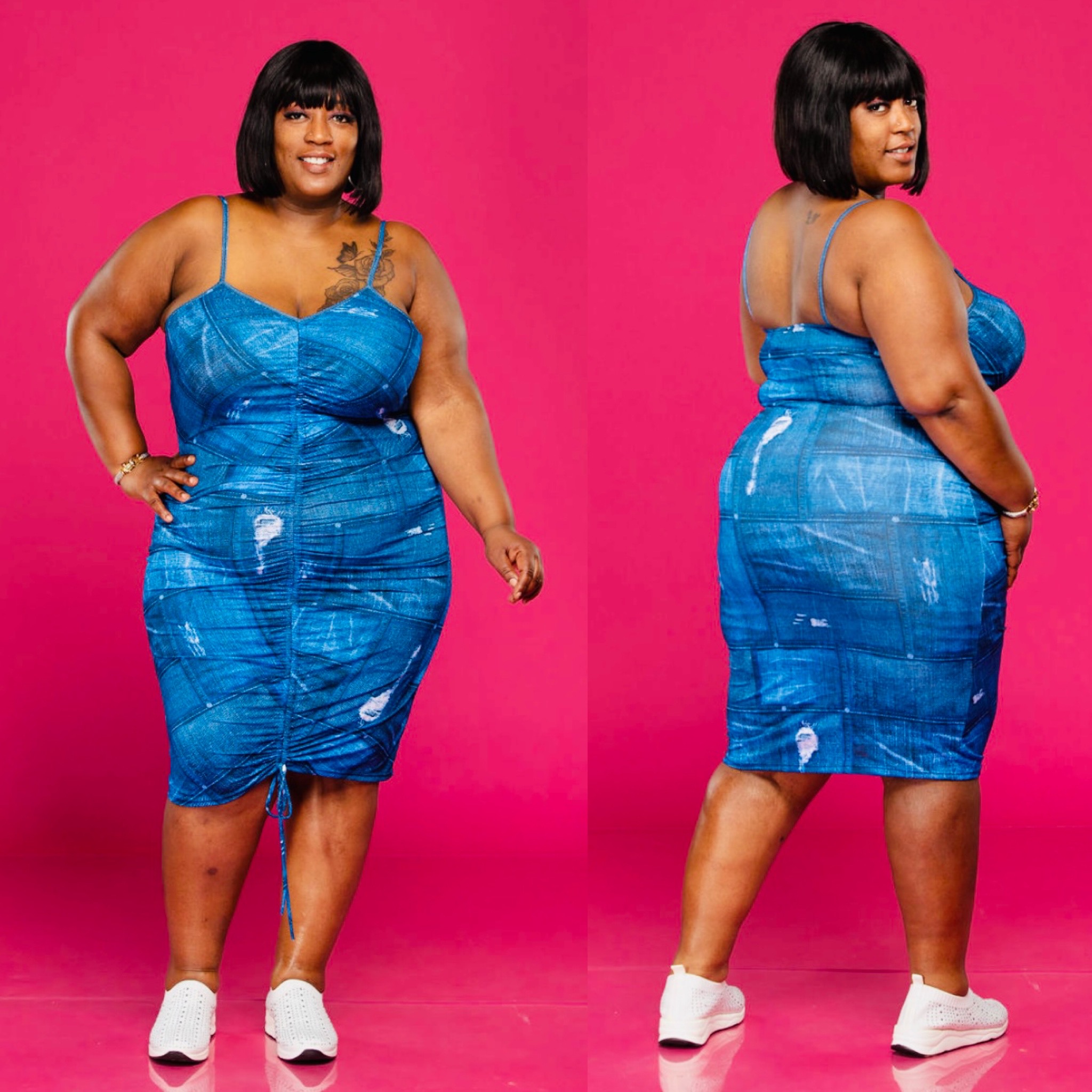 Ladies this denim dress is all Above All for a reason! It runs true to size and has a good stretch.