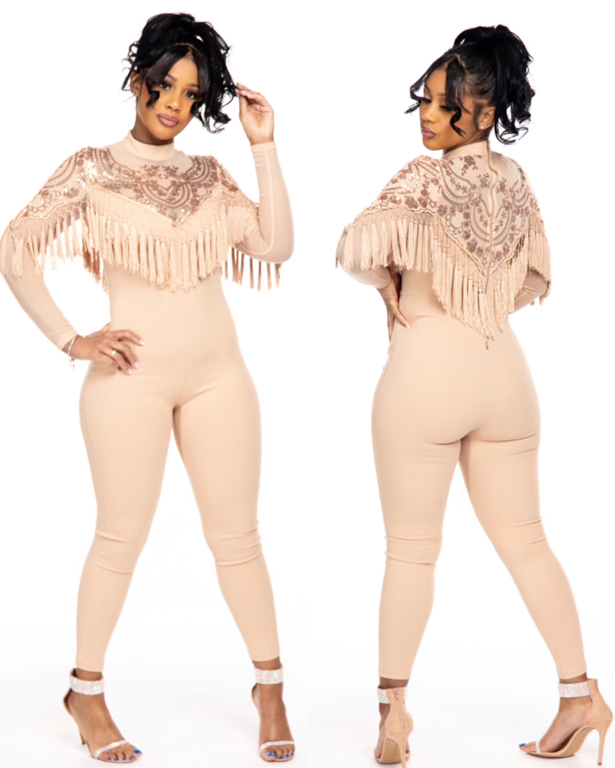 Ladies this jumpsuit is perfect for a night out in the city. It runs true to size and has some stretch.