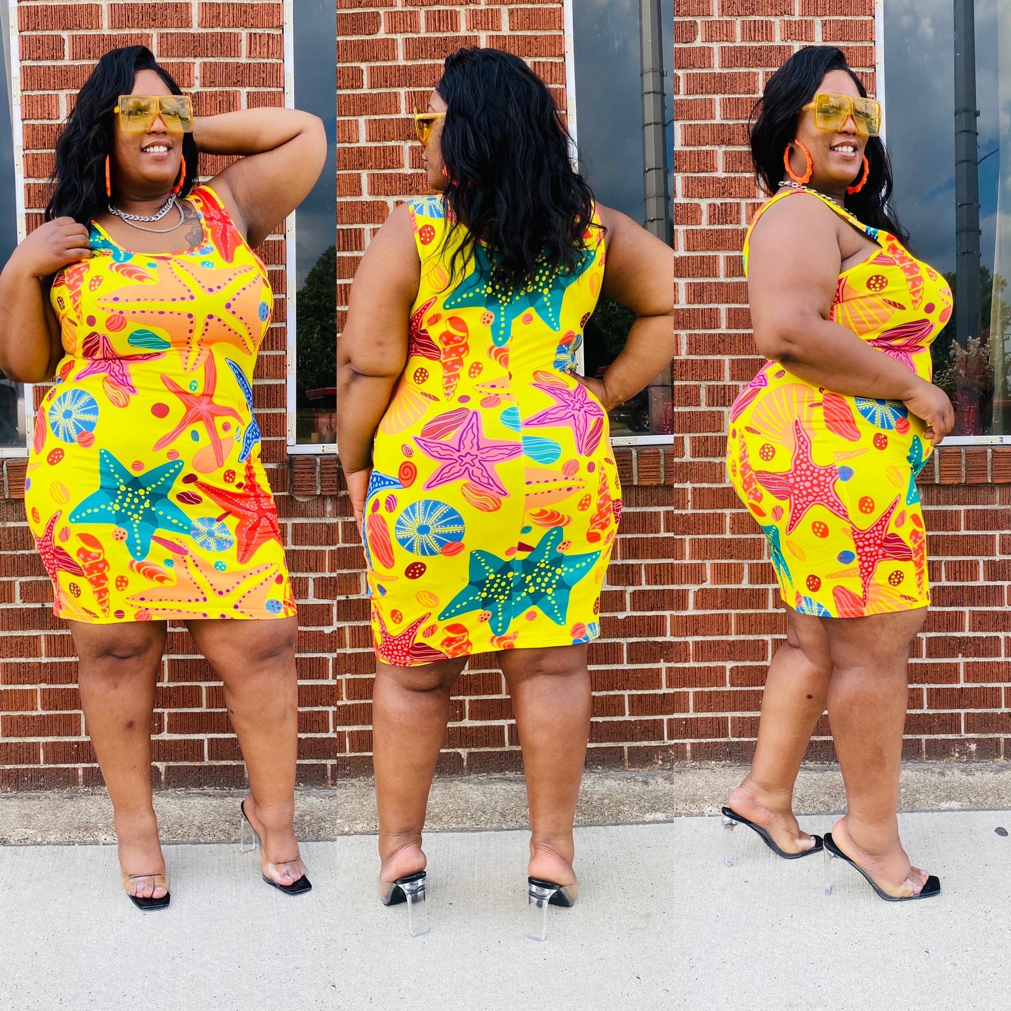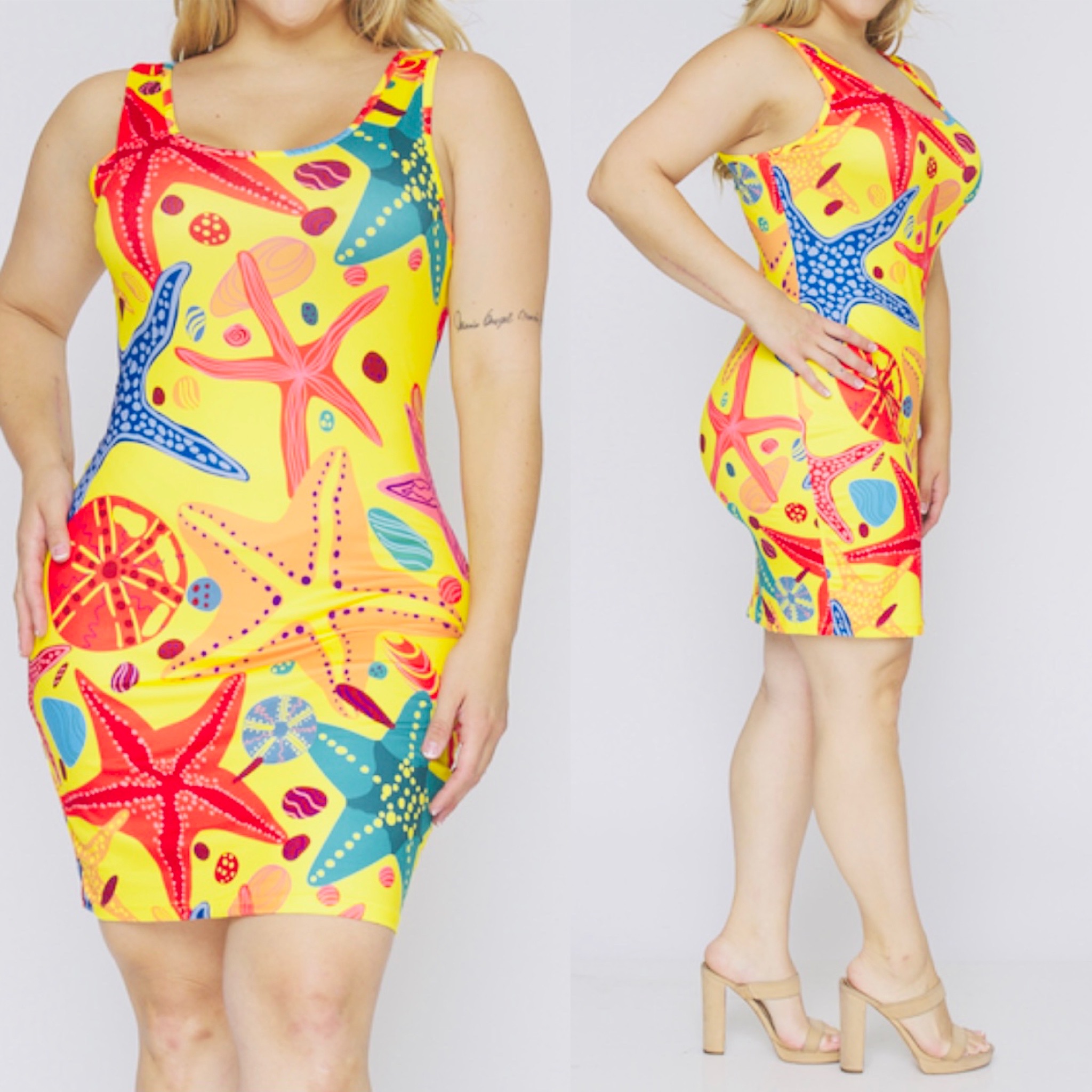 Ladies this dress is perfect for the summer. It has an excellent stretch and runs true to size.
