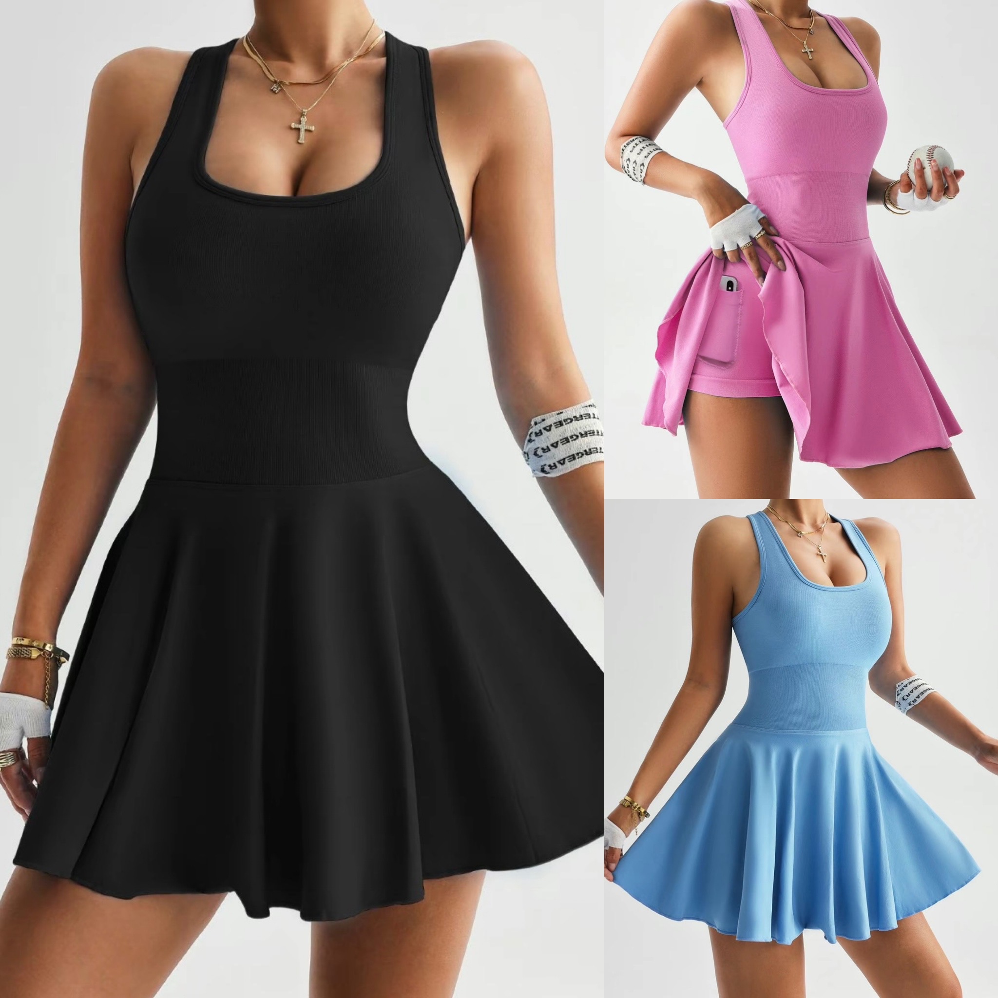 Ladies, this tennis dress is perfect for the summer. It runs true to size and has an excellent stretch.