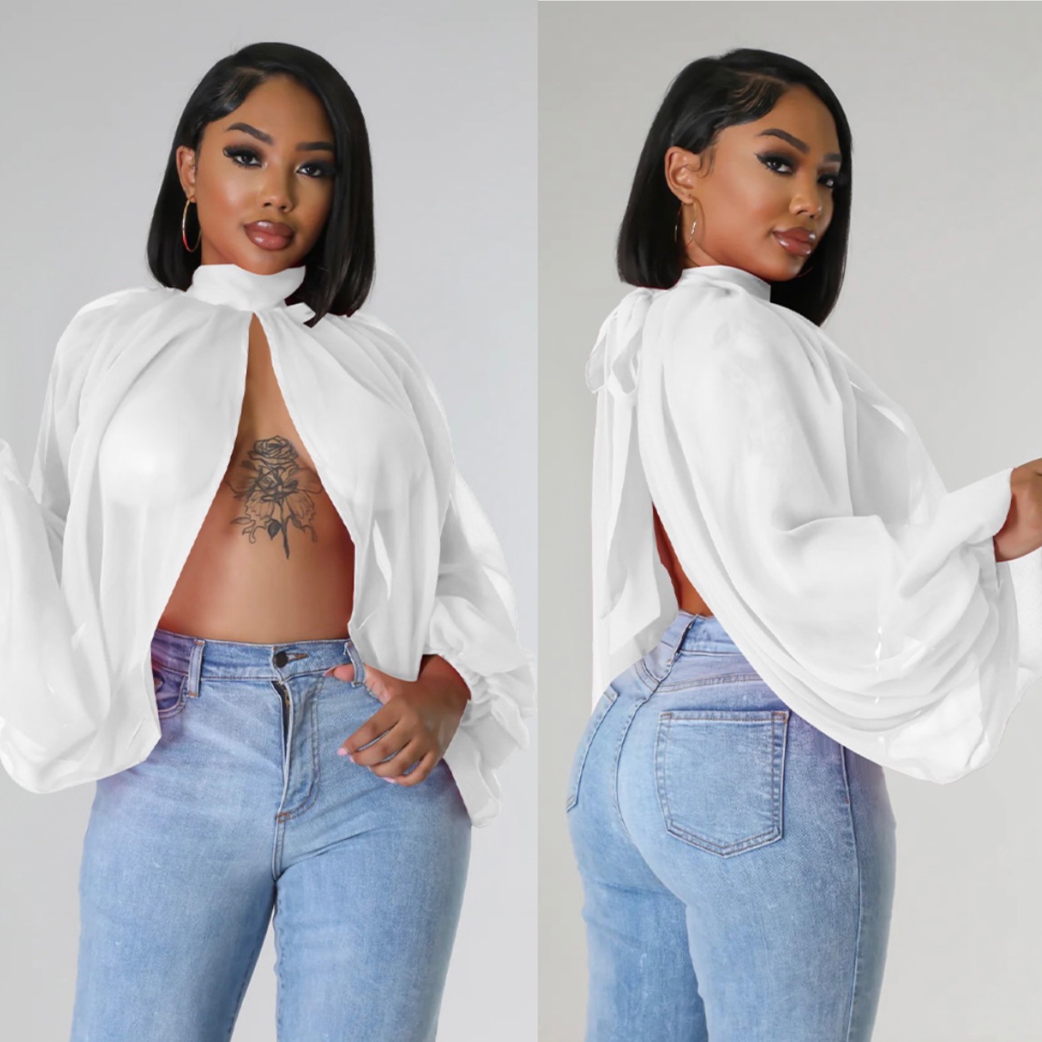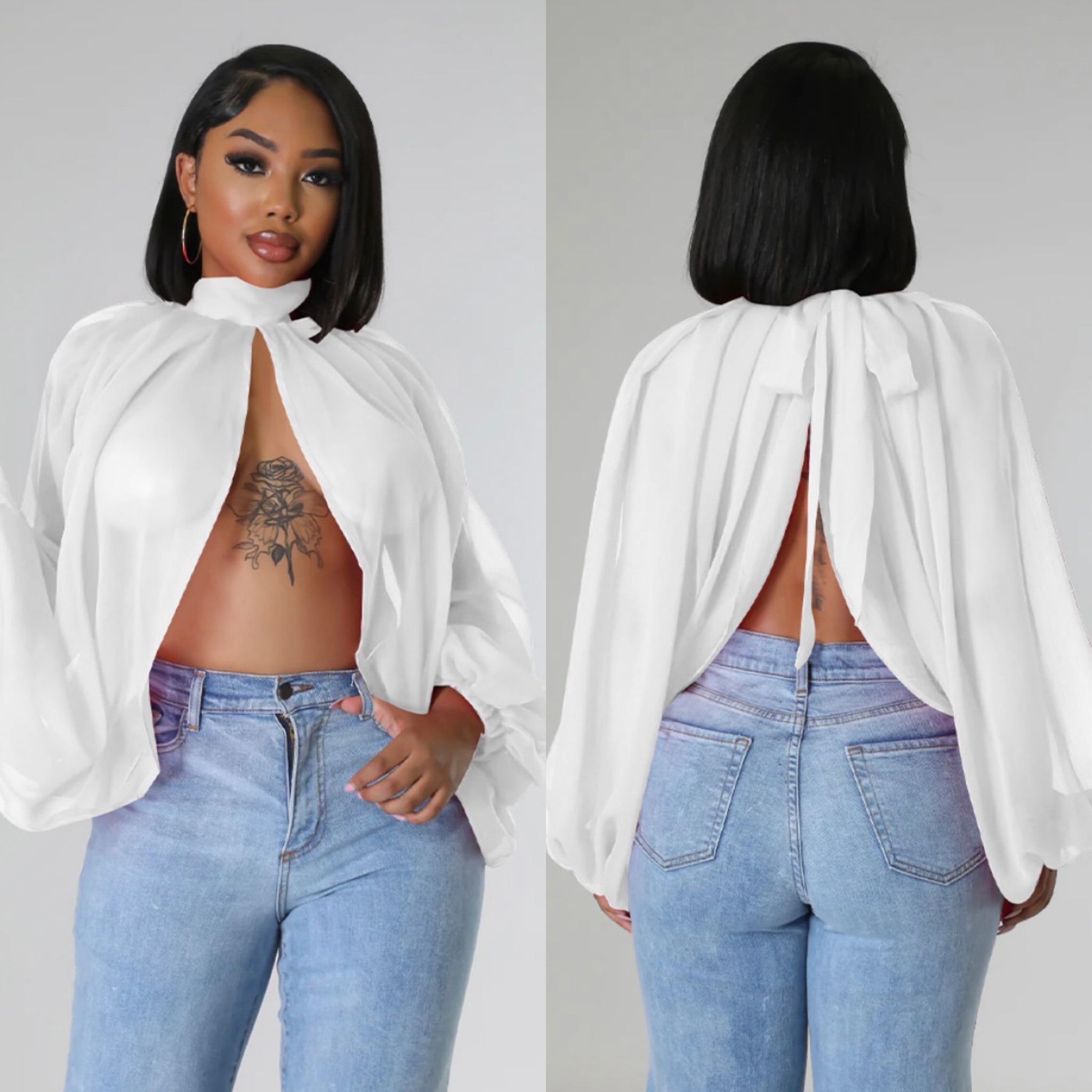 This sexy top is both flirty and classy at the same time. It's a whole vibe. This piece runs true to size.