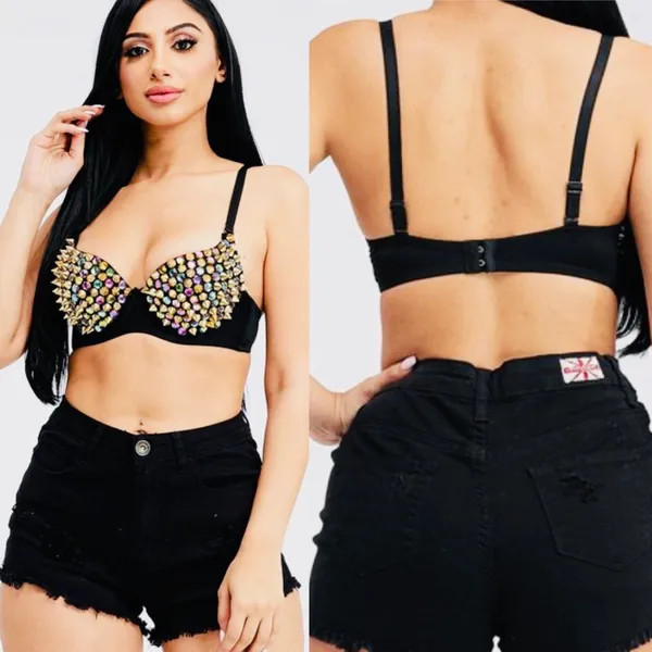 Product Description IN STORE 2-3 DAYS SHIPPING This spiked bra will make any outfit look good. It runs true to size.