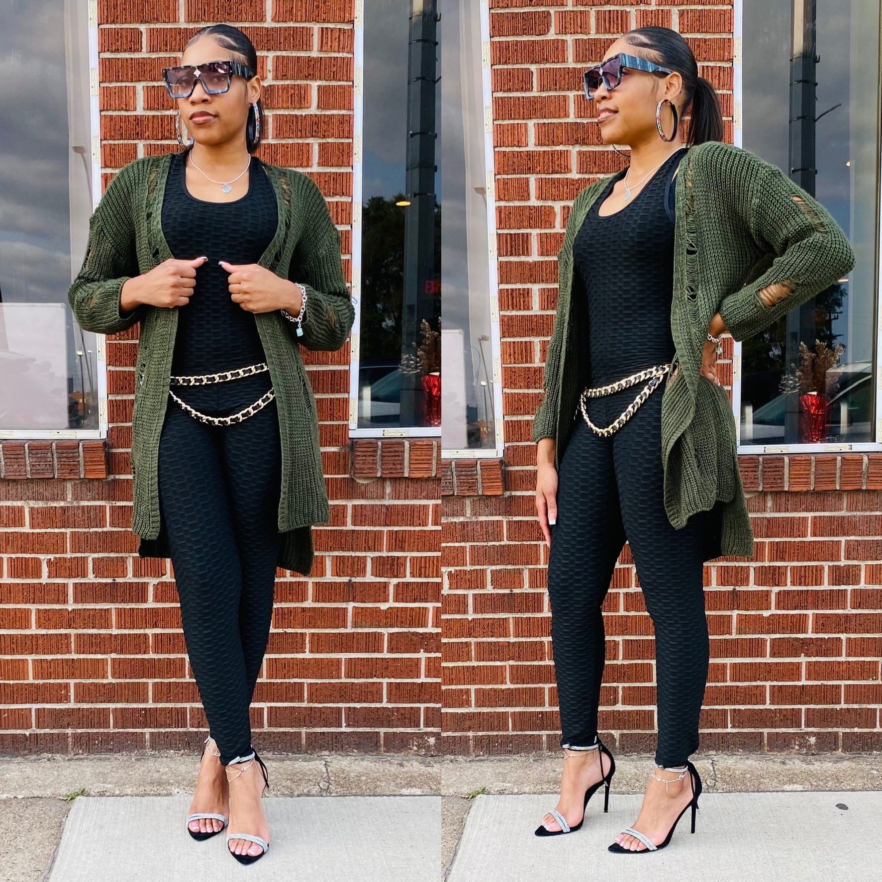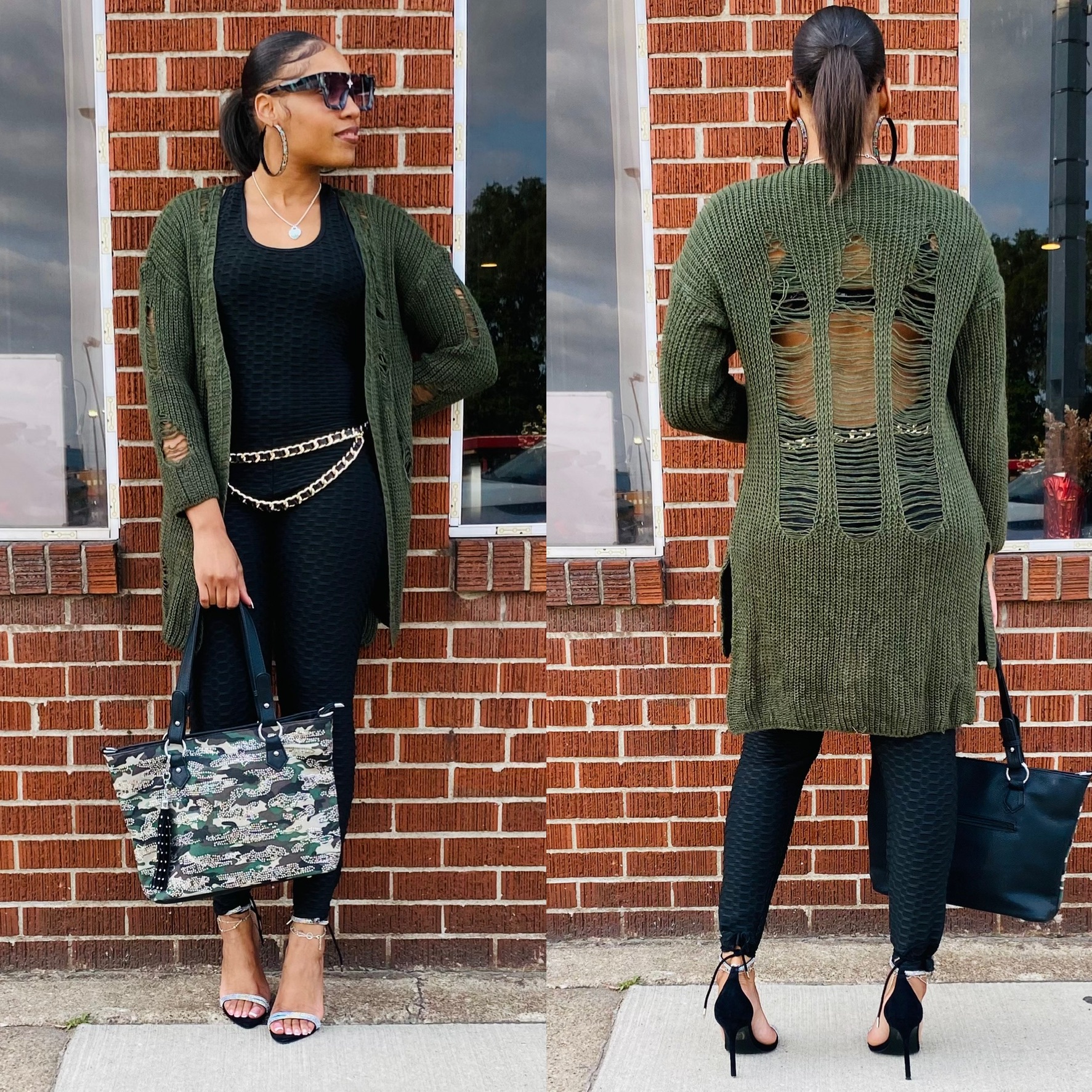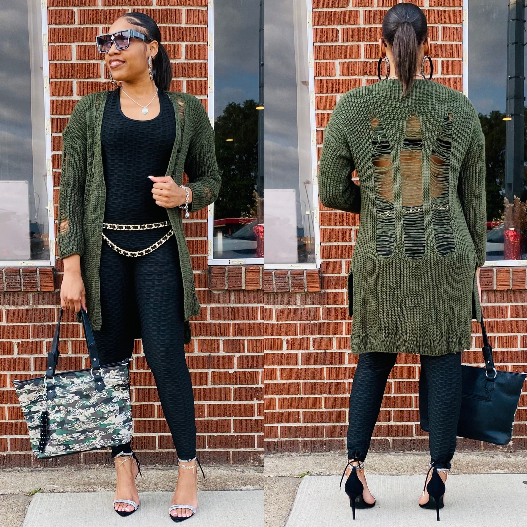 Ladies this distressed sweater is very comfortable and can be worn with anything. It runs true to size and is oversized.
