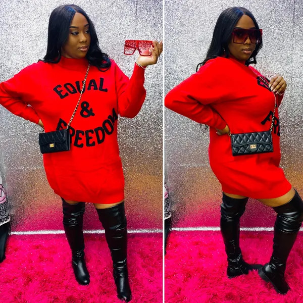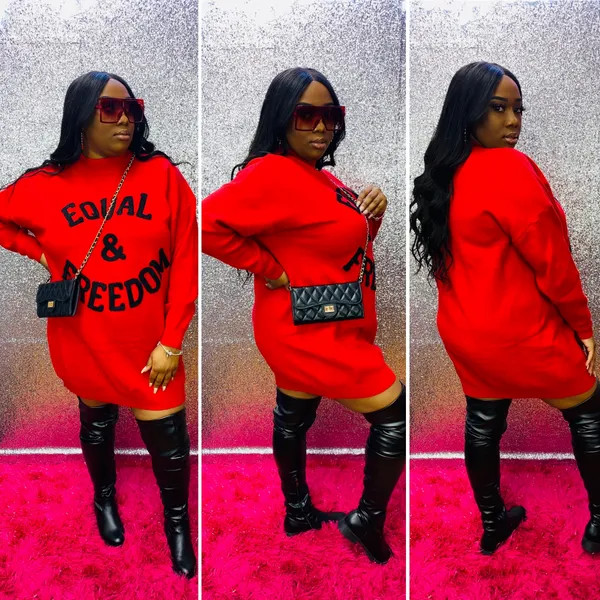 Product Description IN STORE 2-3 DAYS SHIPPING This sweater dress can be dressed up or down. It has a good stretch.