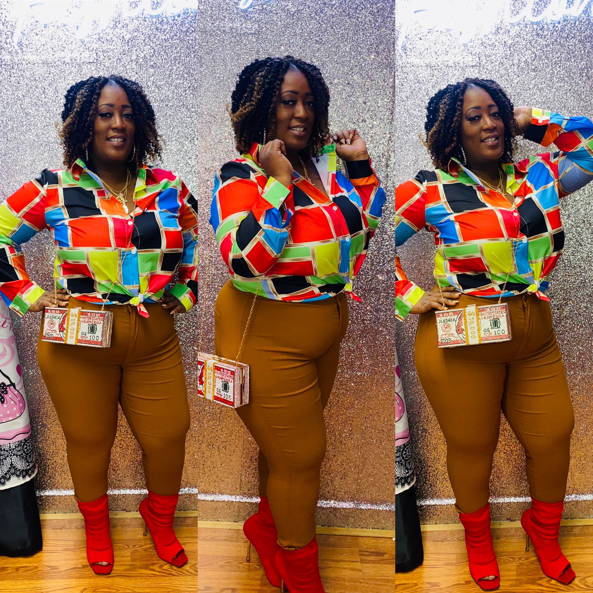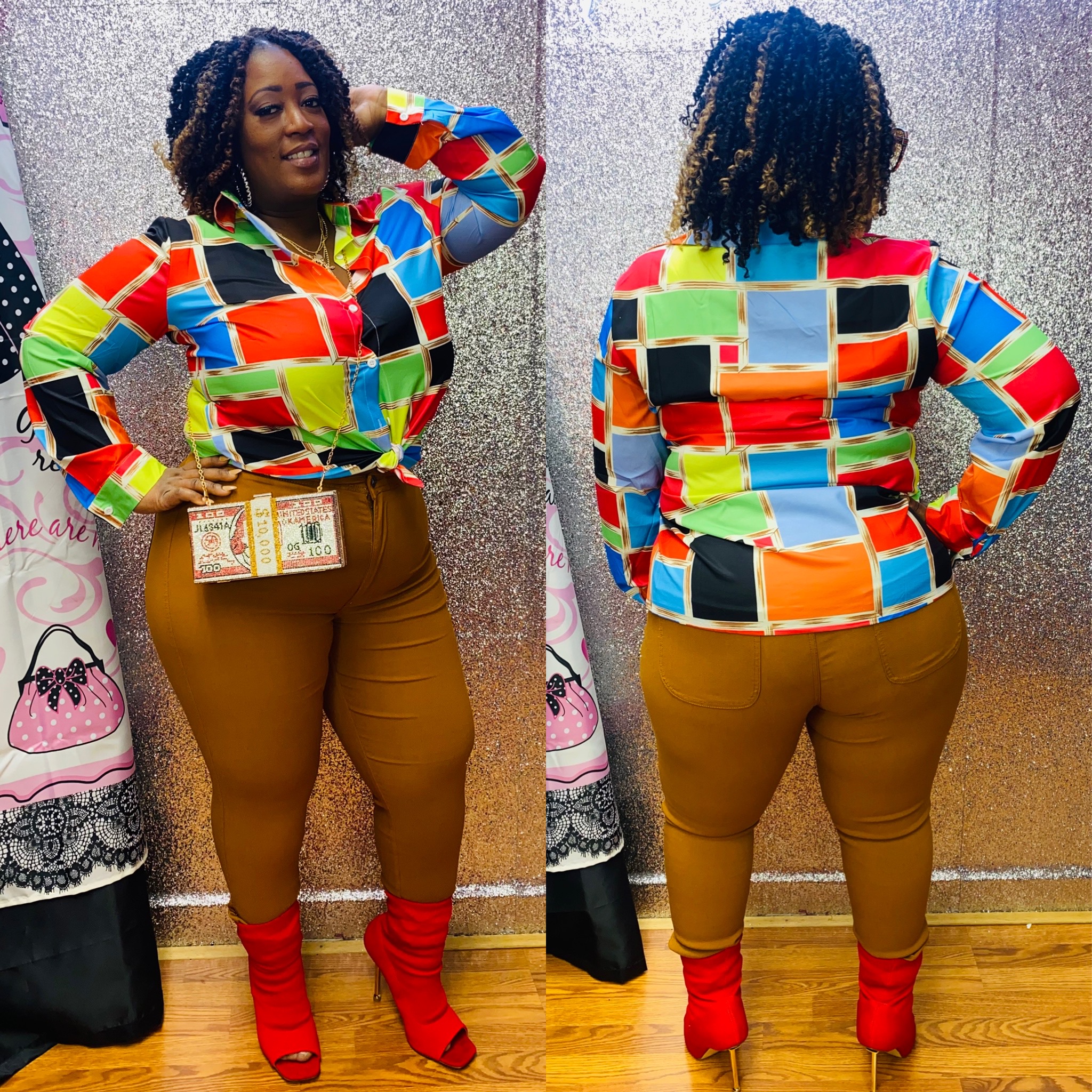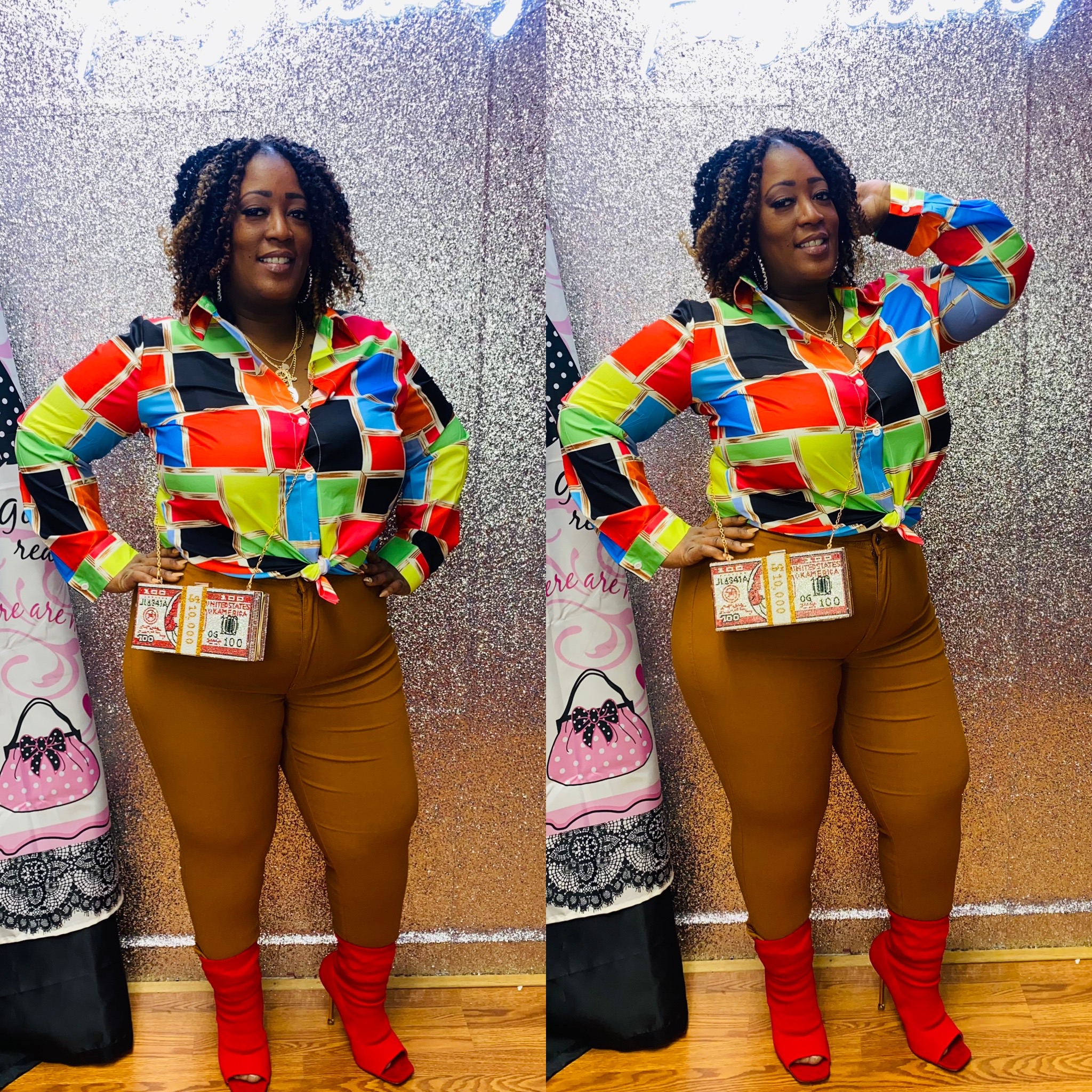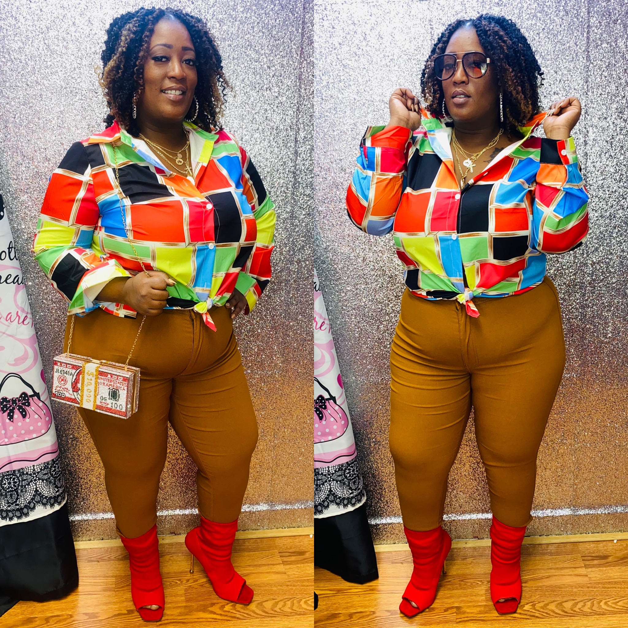 Ladies this blouse is a whole vibe! The sky is the limit with this piece! It runs true to size and does not have stretch.