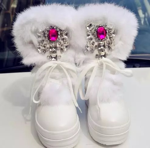 Ladies, these boots are EVERYTHING! The fur trim is so silky and soft! The diamonds are crystal clear and excellent quality! These boots will defiantly turn heads.
