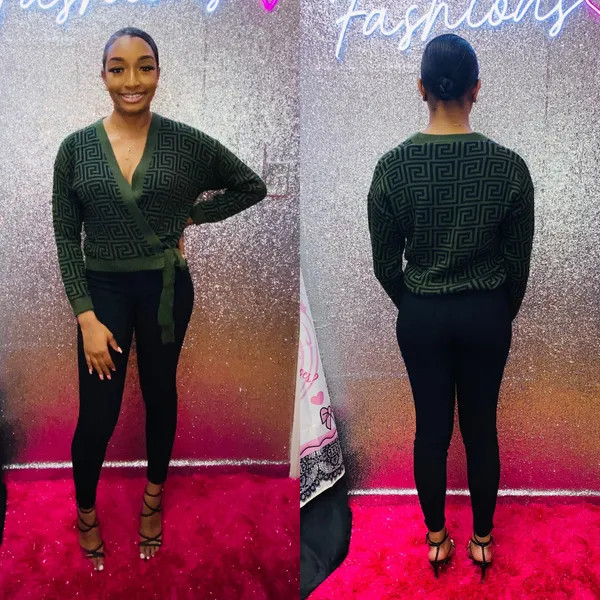 Product Description IN STORE 2-3 DAYS SHIPPING This wrap sweater is fashionable and classy. It runs true to size and has a stretch.