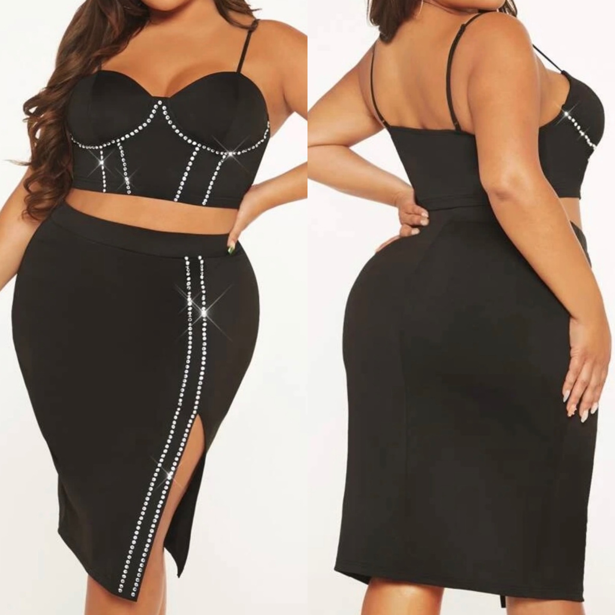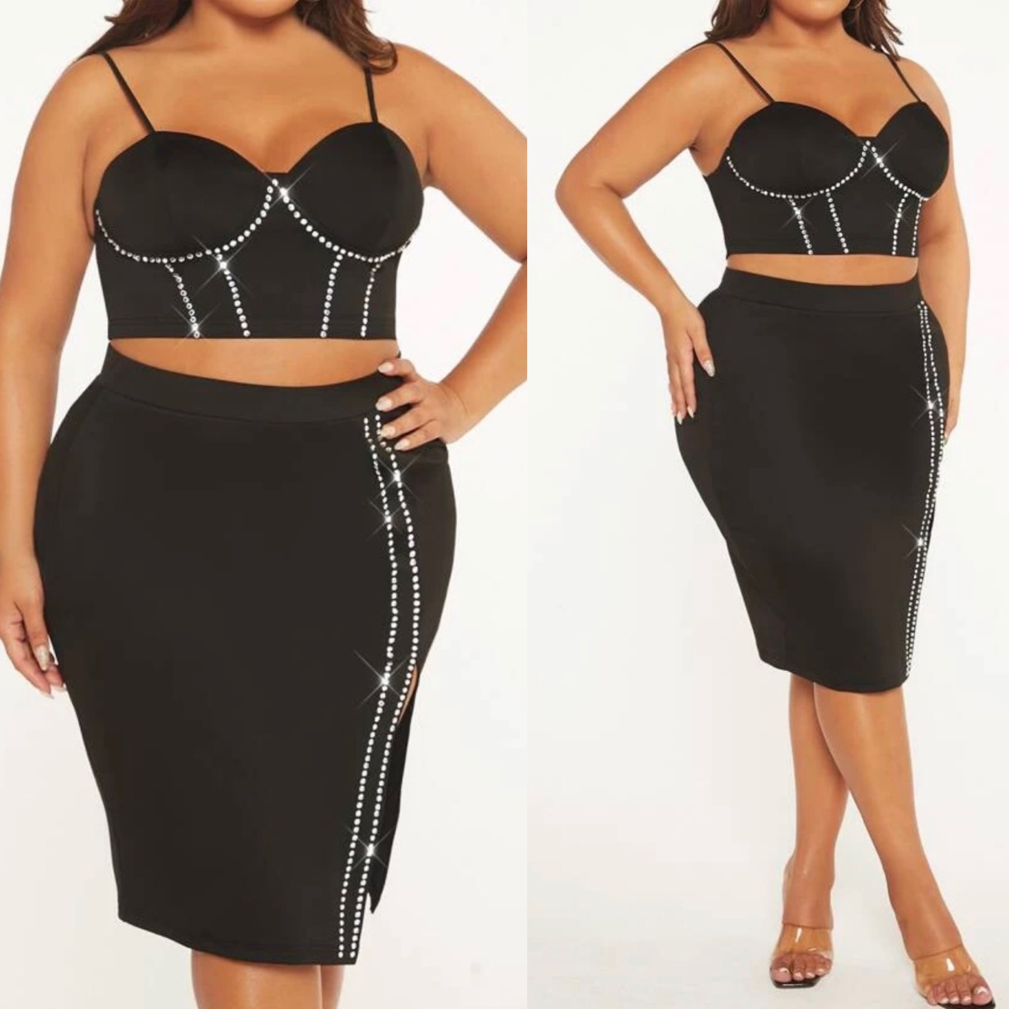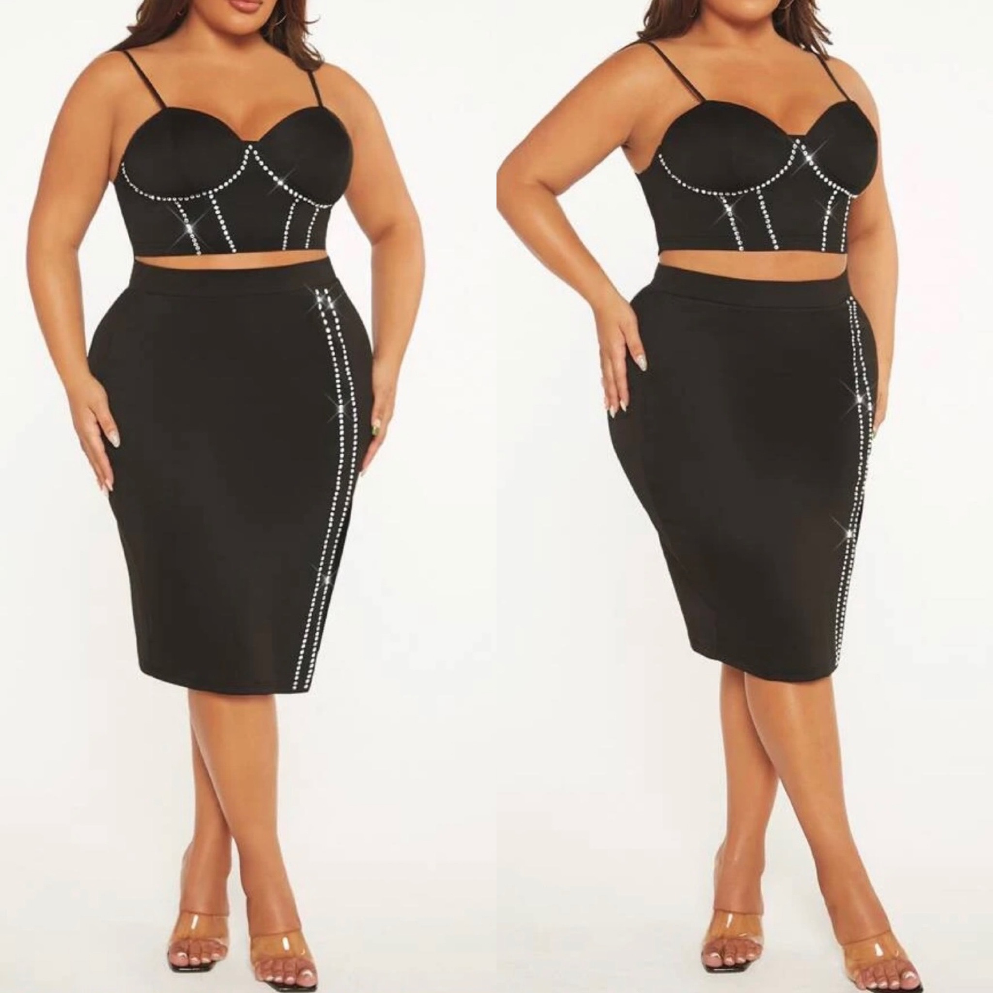 Ladies this beautiful set will definitely get people talking. This piece runs true to size and has a stretch.