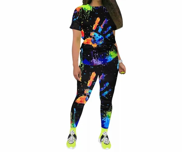 This colorful two piece set is very vibrant and fun. It runs true to size and it has some stretch.