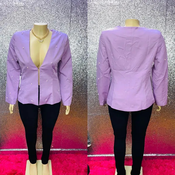 This blazer will look great paired with jeans or a skirt.  Ladies this pearl Blazer runs true to size. It does not have a Stretch.