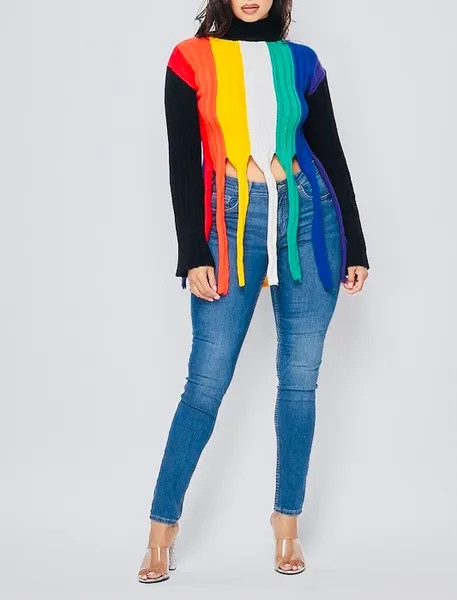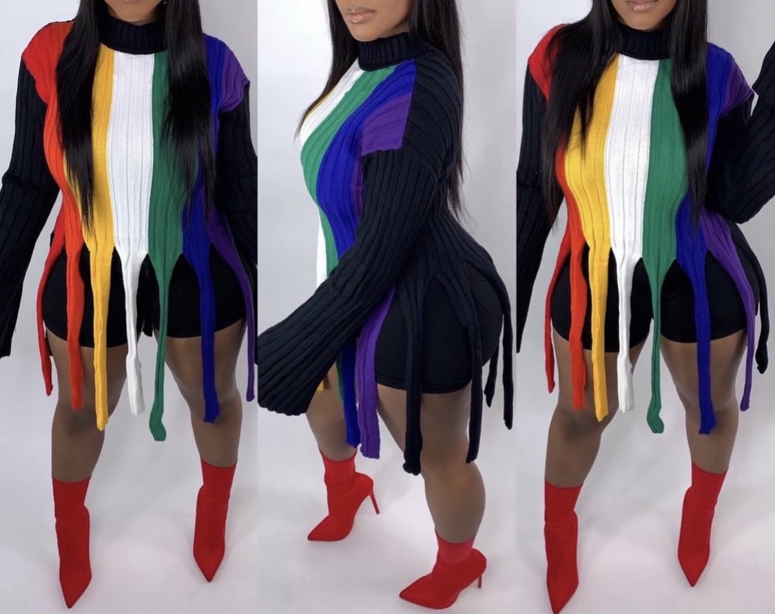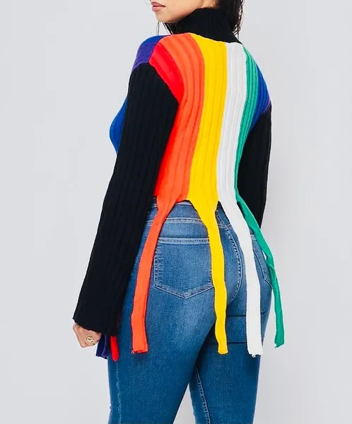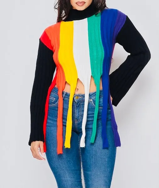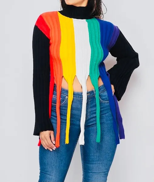 Ladies this colorful Sweater is very vibrant. It runs true to size and has an excellent stretch.