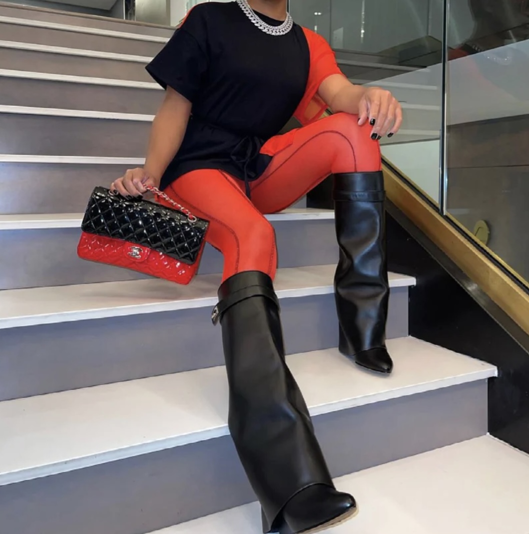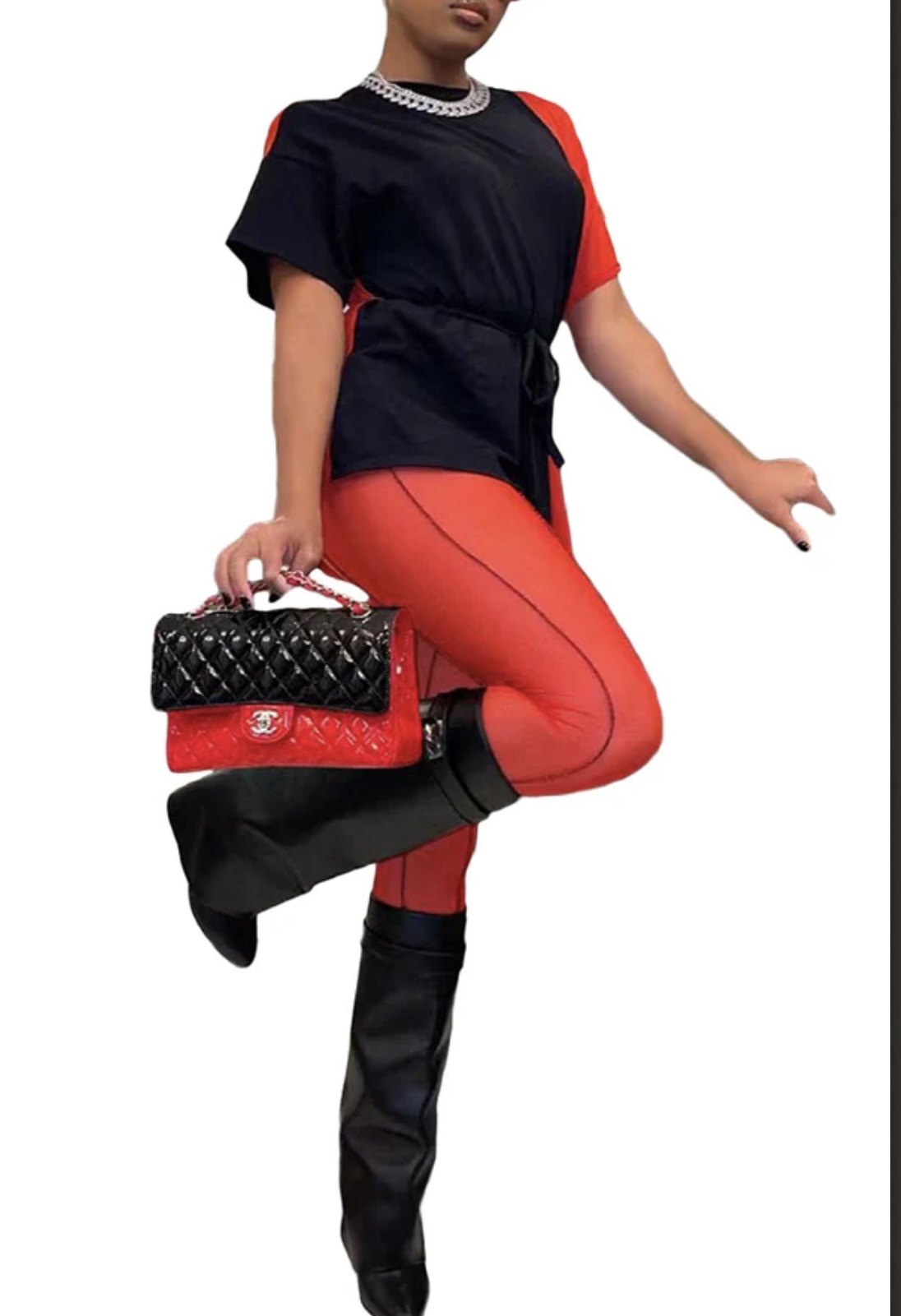 Ladies this classy set can be dressed up or down depending on your shoes. This set runs true to size and has a stretch.