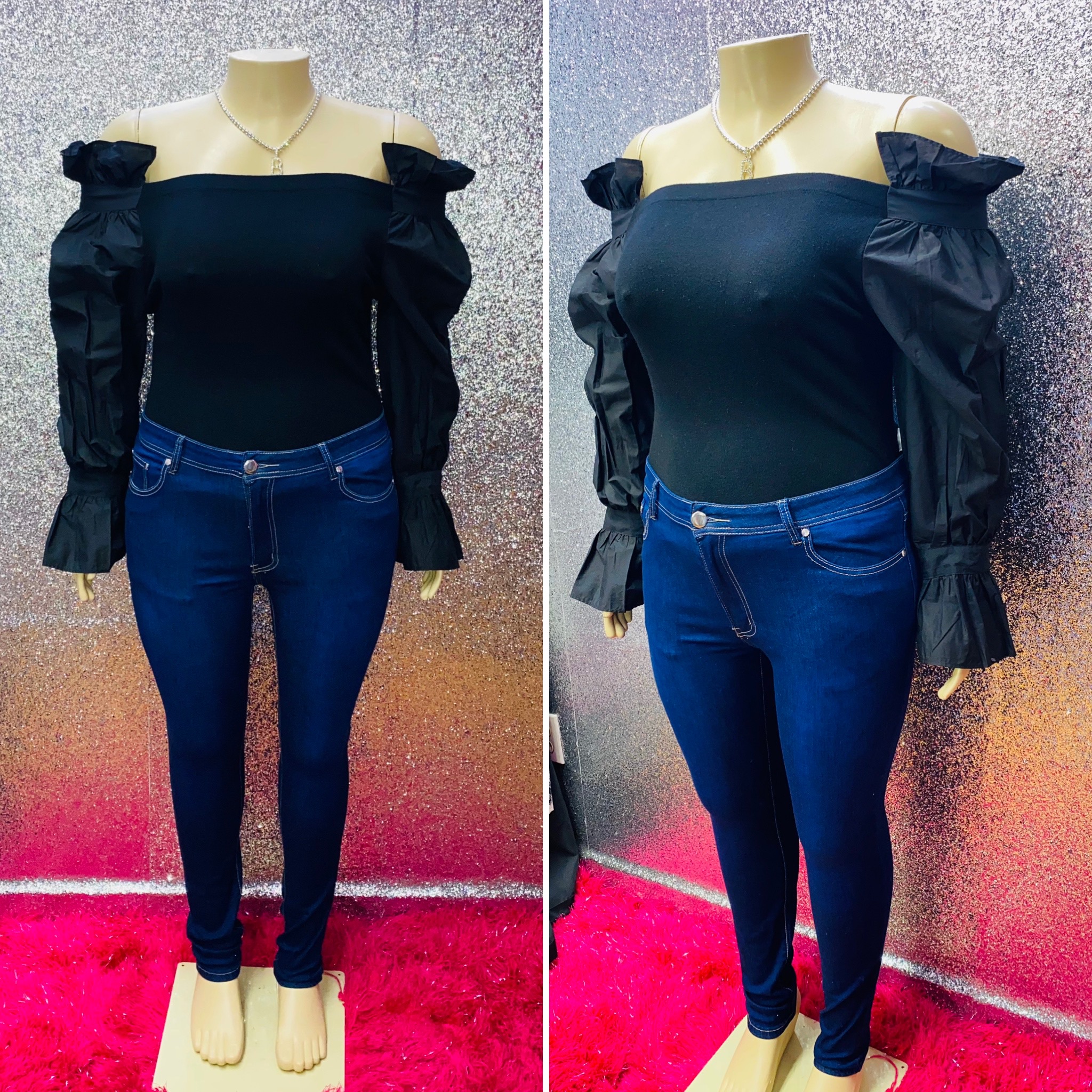 We all want to make it last forever and with one look in this top you can make it happen! This piece is knitted and has an excellent stretch. You can wear this piece on or off the shoulders. It is also true to size.