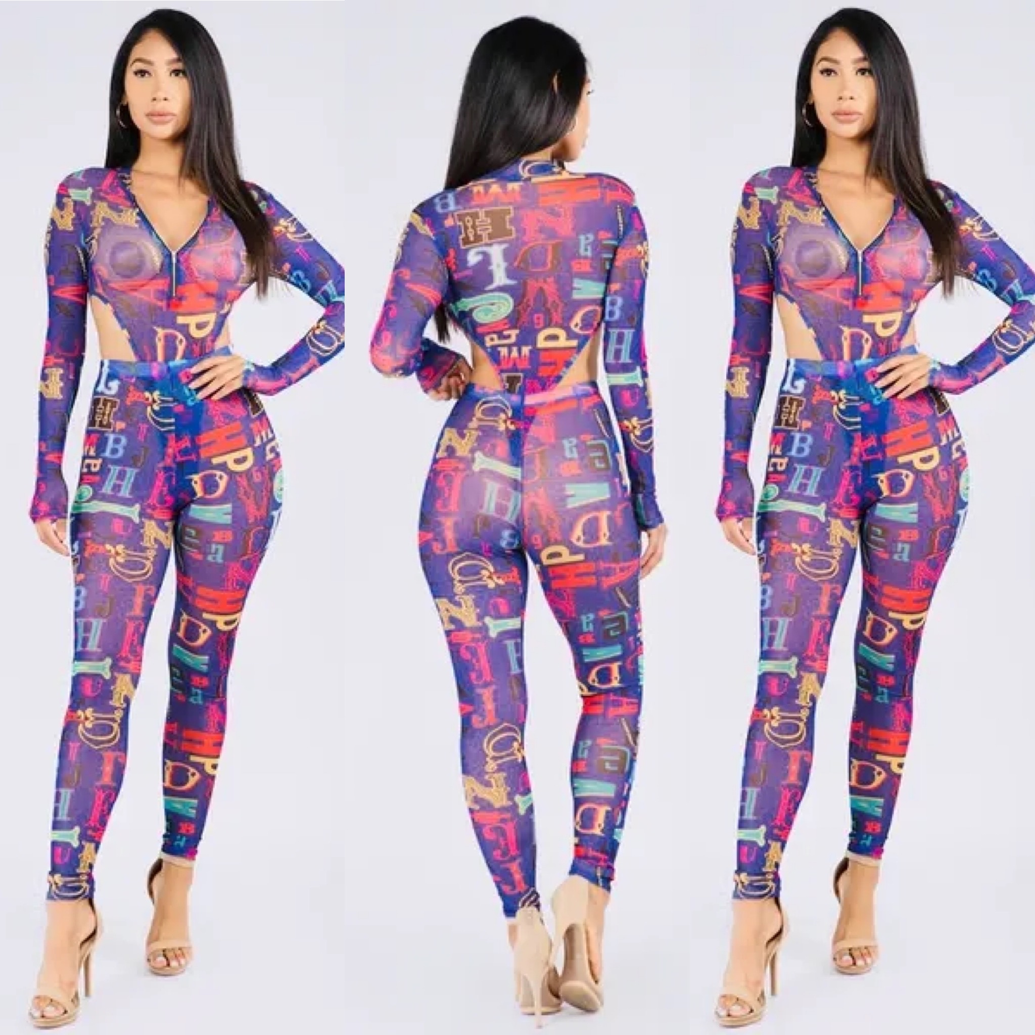 This sexy mesh two piece set will definitely get the attention of others. It runs true to size and it has some stretch.
