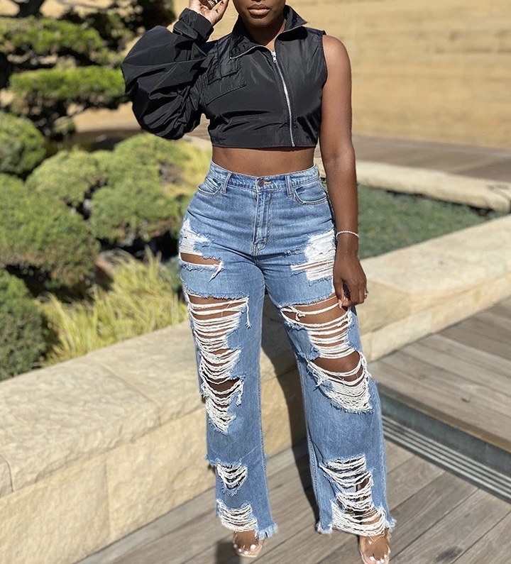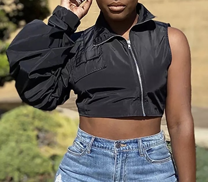 Ladies this trendy Jacket can be worn with anything. It runs true to size and does not have much stretch.