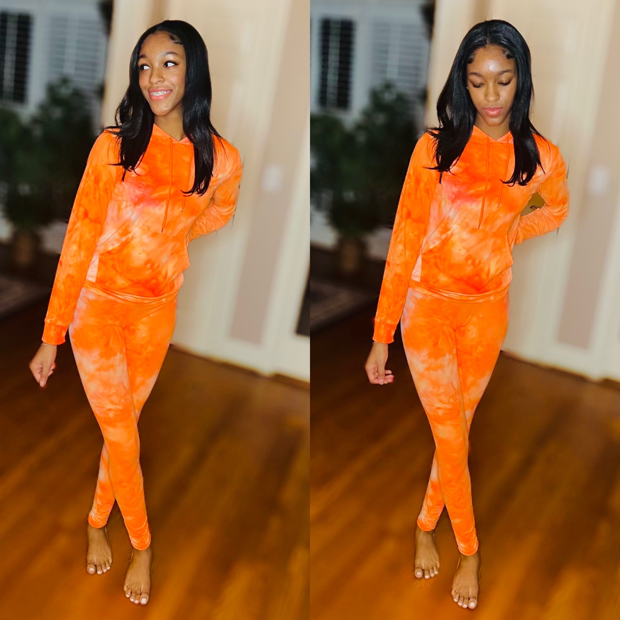 Ladies this comfortable tracksuit can be worn practically anywhere. It runs true to size it has a nice stretch.