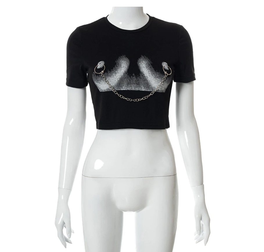 This fashion crop will look good with any bottoms. This crop runs true to size and has a stretch.