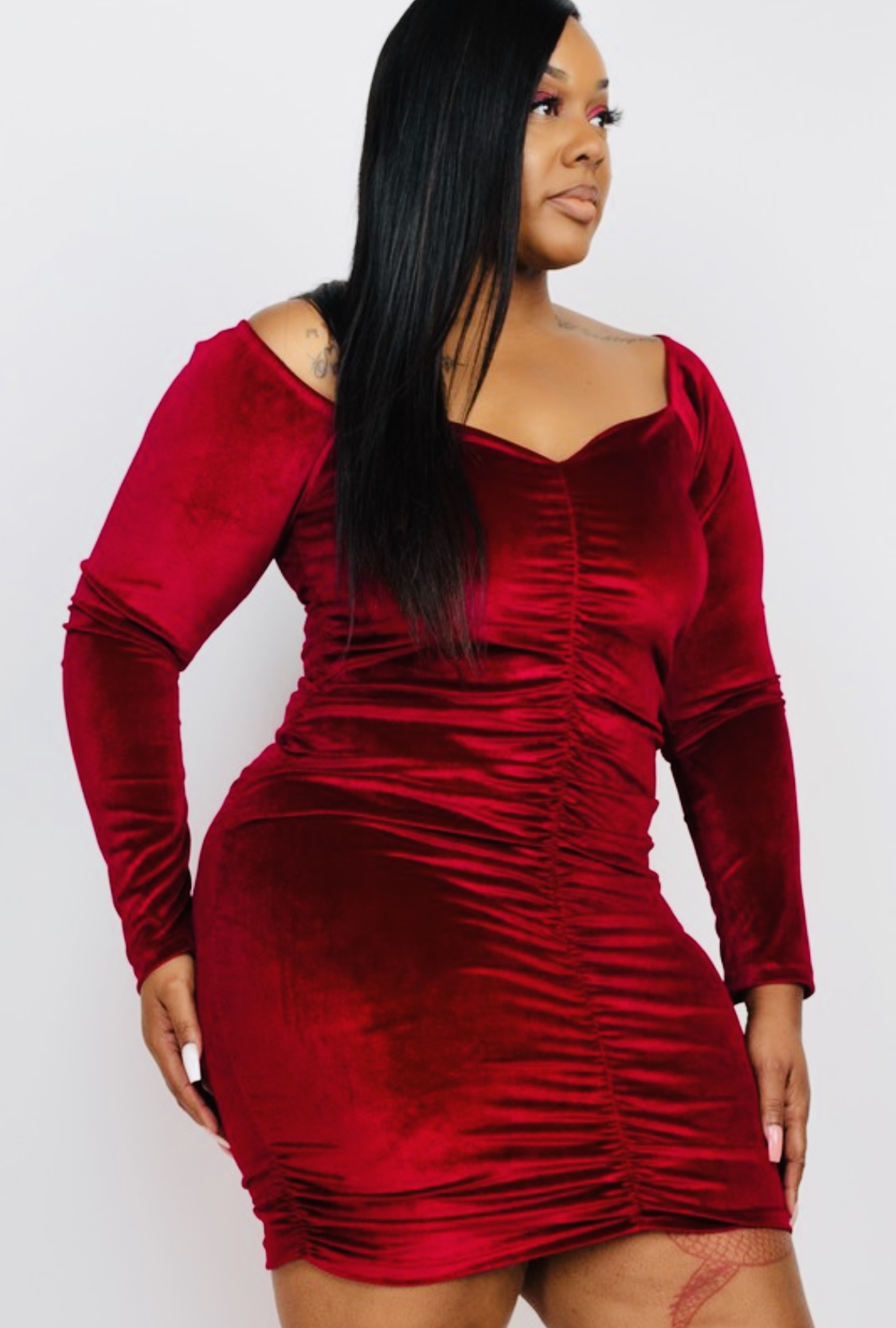 Ladies this velvet dress is very classy. It runs through the size and has an excellent stretch.