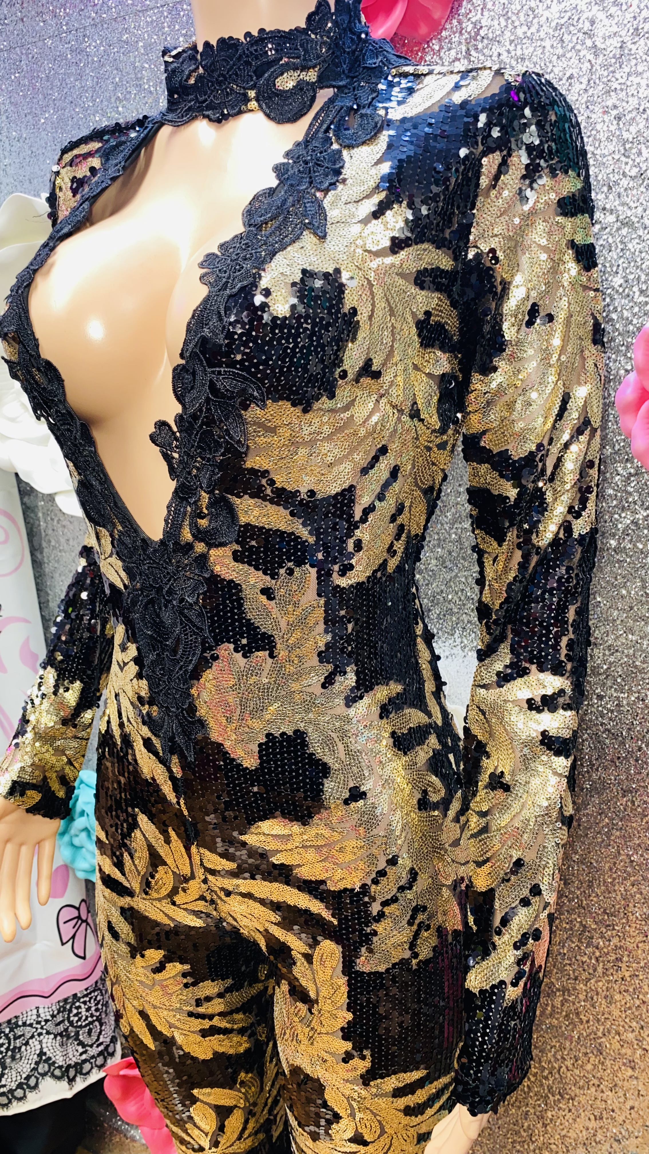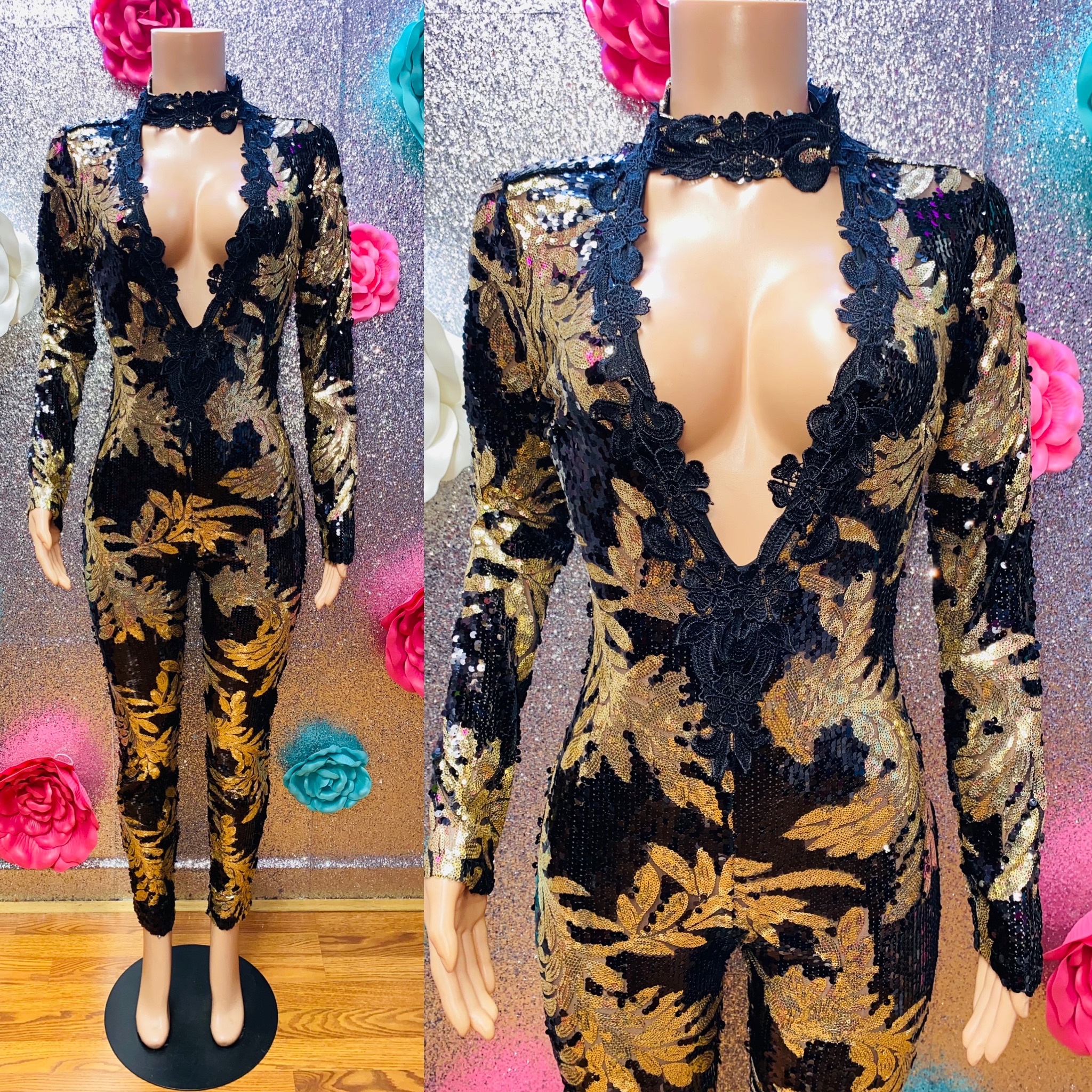 Ladies, this jumpsuit will have you red carpet ready. This jumpsuit is perfect for a special occasion. It runs true to size and has some stretch.
