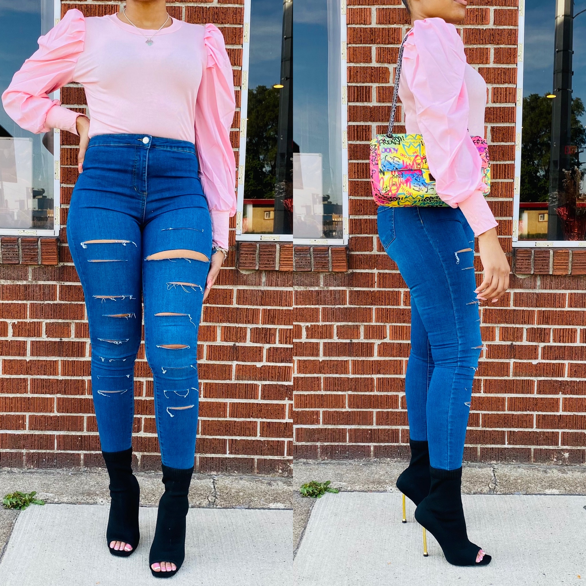 Ladies this cute top will go with anything. It runs true to size and has a good stretch.