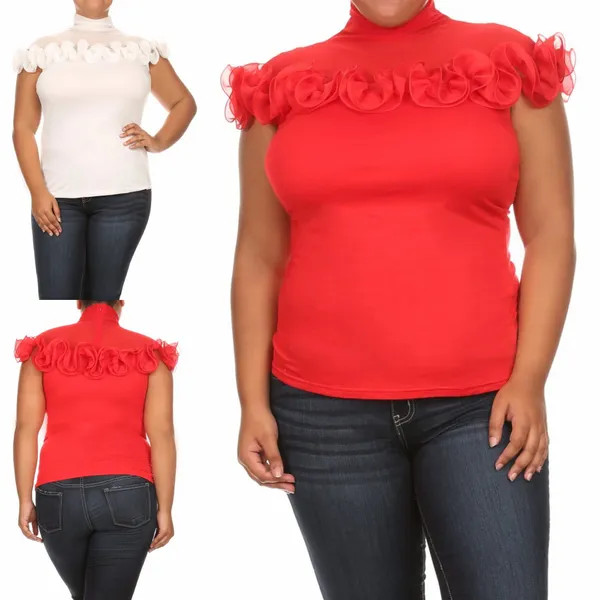 Ladies this ruffle top will look great with a pair of leggings orb jeans. This piece runs true to size and has a stretch.