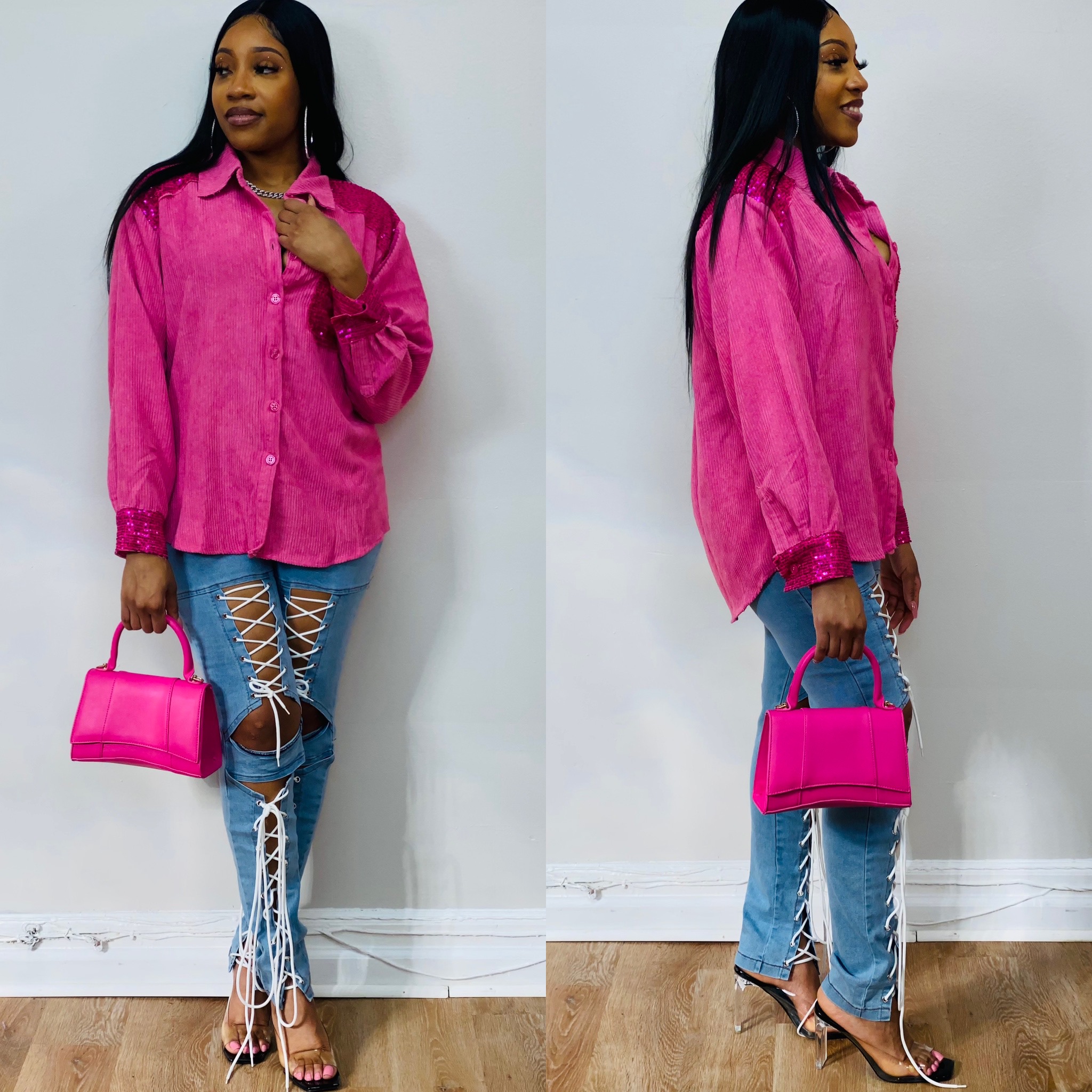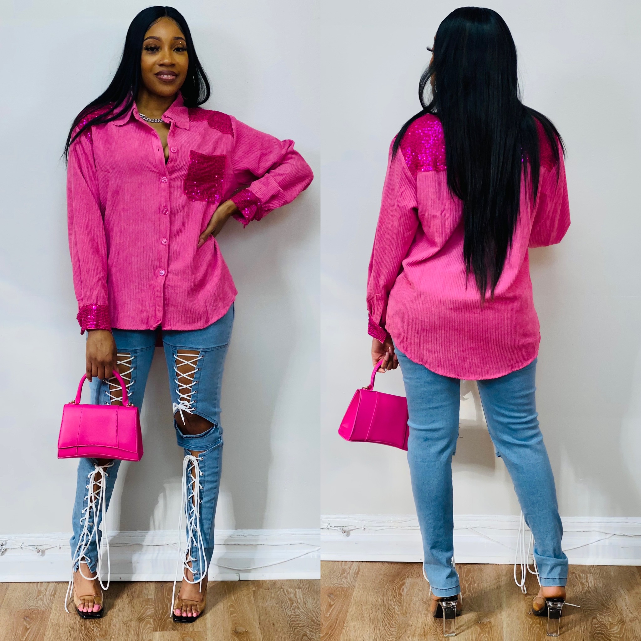 CLF Choose Options Sprinkle Me Sequin Top (Pink) MSRP: Was: Now: $48.00 In Store 2-3 days shipping This cute sequin bustier will jazz up any look. This piece runs true to s…