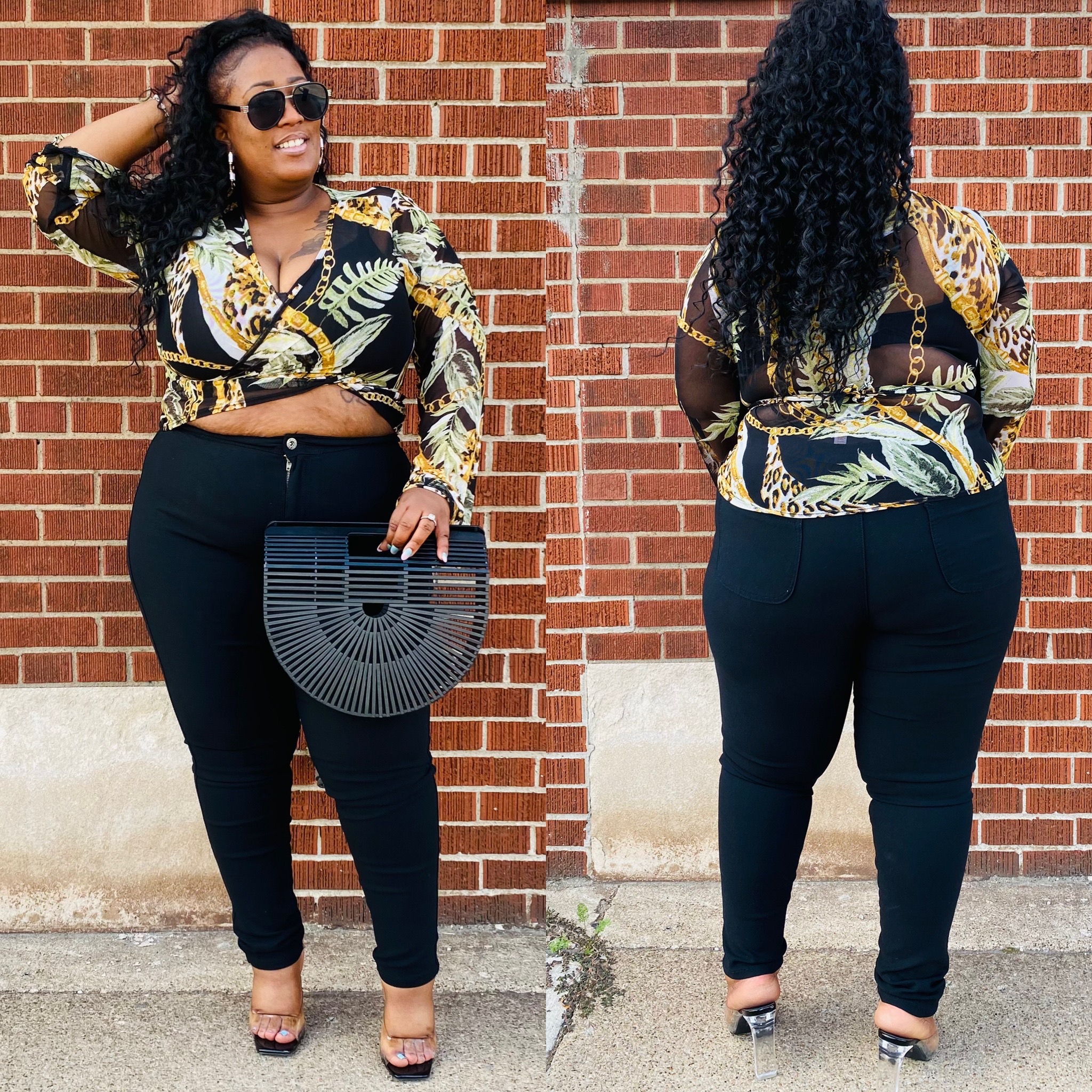 Ladies this tie up top is so classy and elegant . It runs true to size and has an excellent stretch.