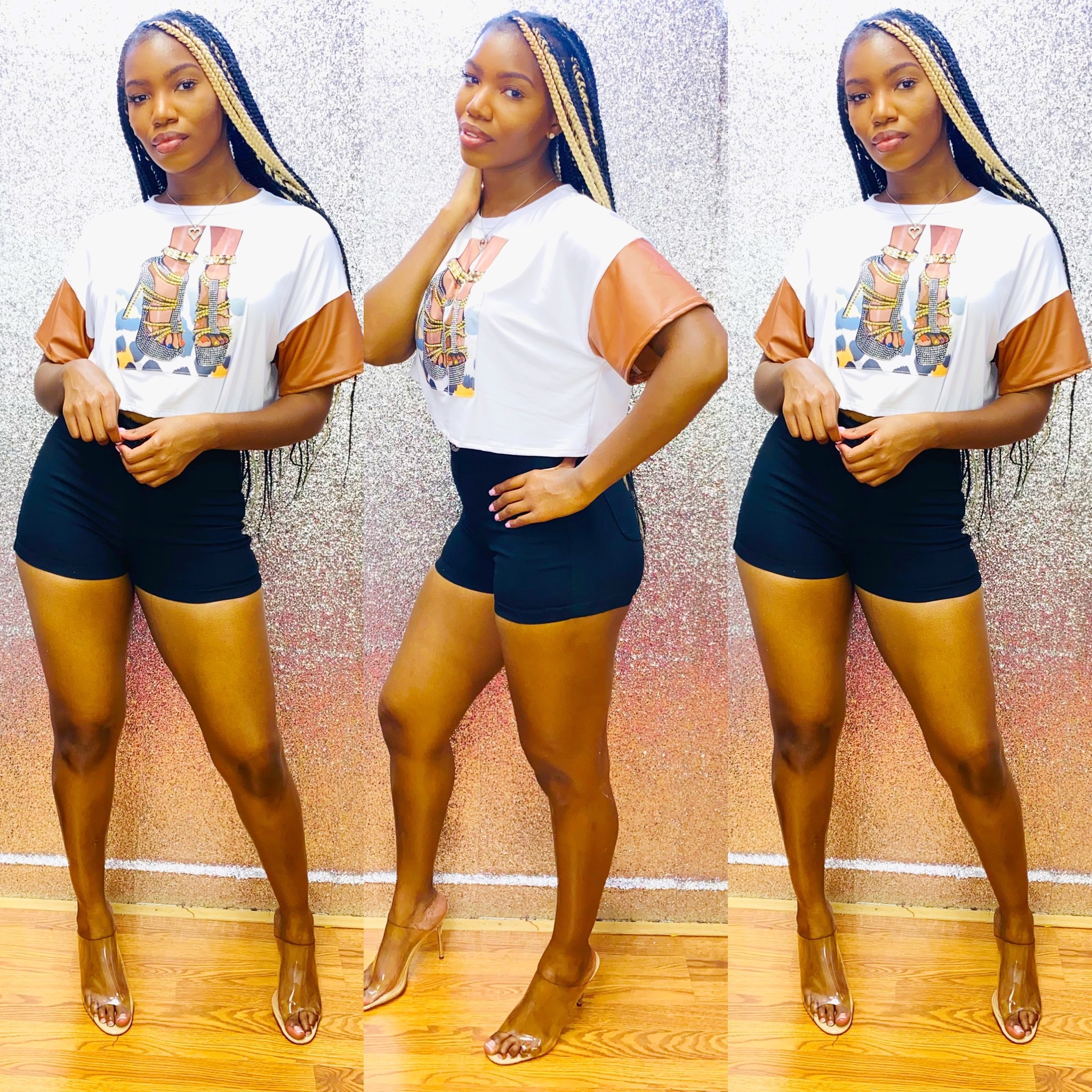 Ladies the Studded Beauty top can be paired with practically anything. It runs true to size and has a stretch.